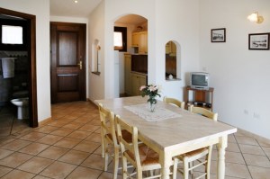 We have 5 apartments with 2 bedrooms, 2 bathrooms, living room-kitchen, large covered veranda with table and chairs, TV, washing machine, parking, garden. The cost is 12 Euro per person per day during March, April, May, September, October, from May 28st 2016 to June 17th 2016 14 Euro per person per day, from June 18th 2016 to July 1st 2016 17 Euro per person per day. To take advantage of these prices we require a minimum of 4 persons and a minimum stay of 7 days. Each apartment has a sofa bed in the living room. A fifth adult or small children are in the discount price for families. Included is the use of the kitchen with all the necessary utilities and cleaning. In the same building we have an apartment with 1 bedroom and a sofa bed (4 beds).