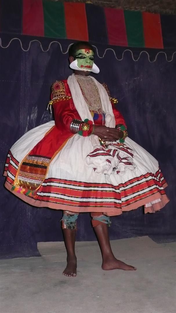 Das Schminken und Kostümieren der Darsteller dieser südindischen Tanzform nimmt oft mehrere Stunden in Anspruch. Die Materialien sind alle lokal erhältlich. Die einzelnen Figuren erkennt man an ihrem Make-up. Ich war schon vor der Aufführung vor Ort und konnte der Schminkzeremonie beiwohnen. Und ich lernte die Darsteller kennen: Maneesh, Manohar und Vinayan.