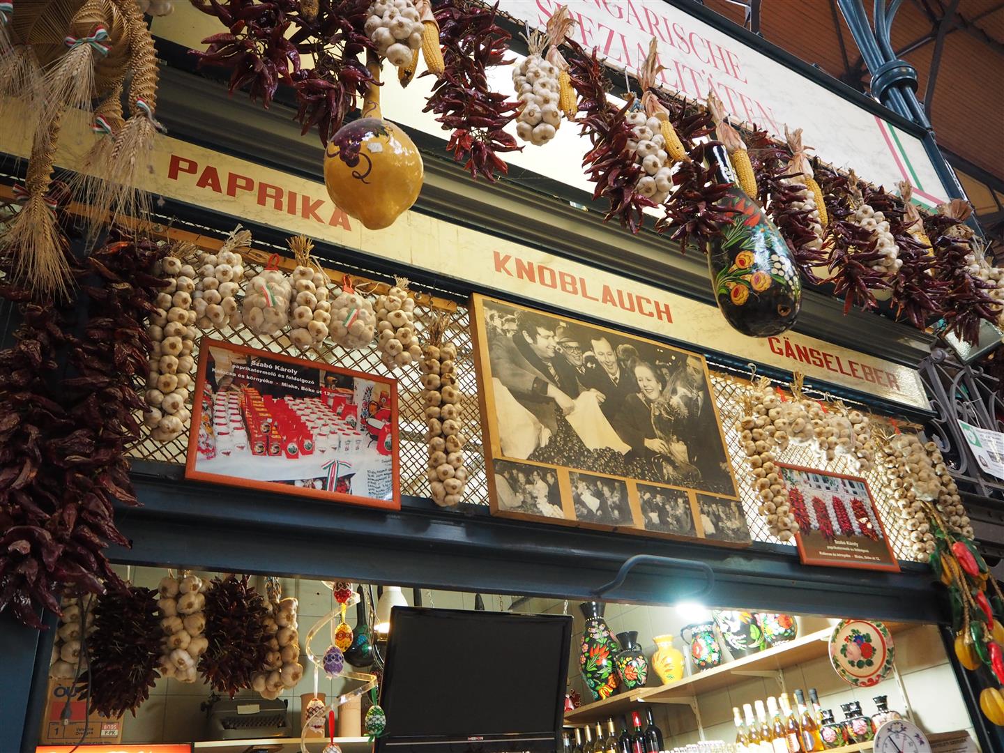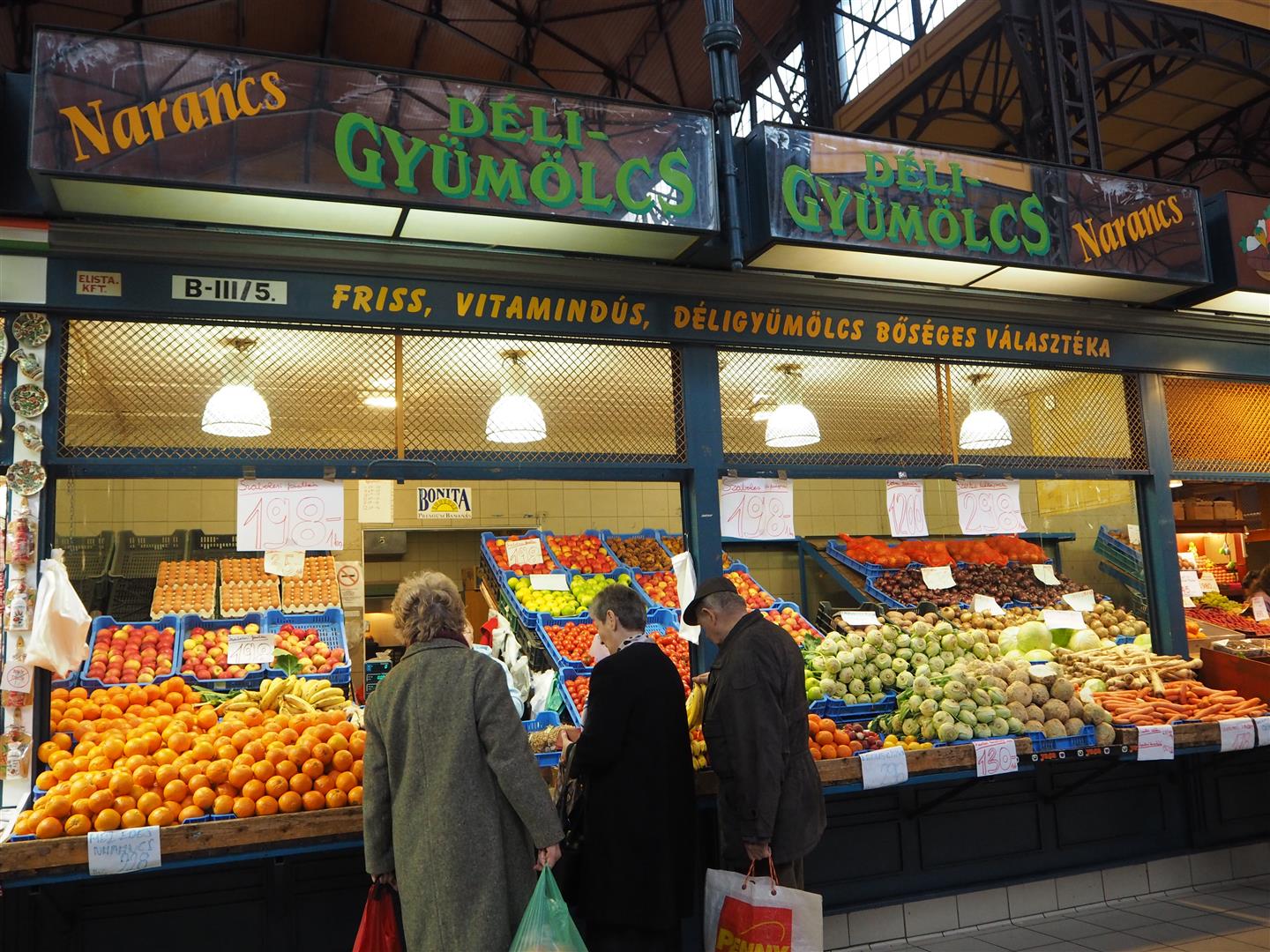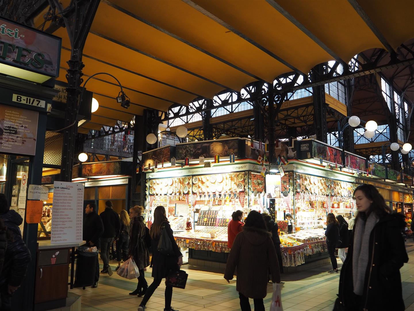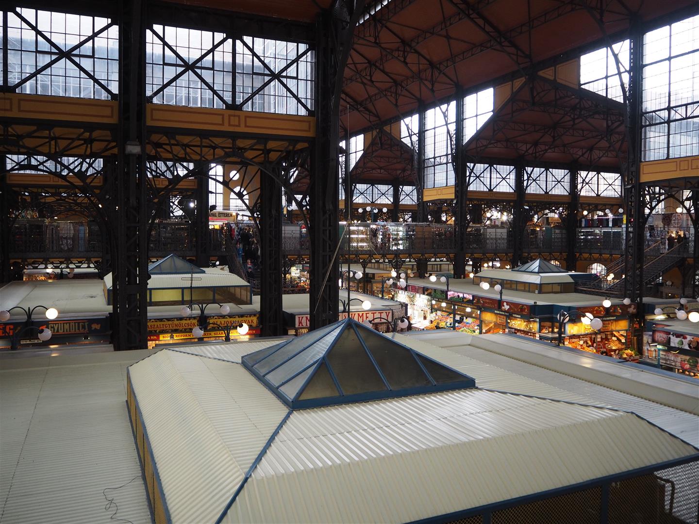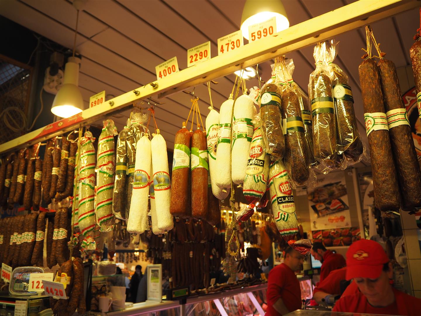 Die Große Markthalle (Nagy Vásárcsarnok) ist der wichtigste Markt von Budapest. Marktstände verteilen sich auf zwei Etagen. Doch die Geschäfte spielen sich hauptsächlich im Erdgeschoss ab. Knoblauchgirlanden, Paprika, frische Früchte, Gemüse, Würste, Käse – hier finden wir alles, was das Schlemmerherz begehrt. In der oberen Etage gibt es Touristensouvenirs, viele davon sind sehr kitschig.