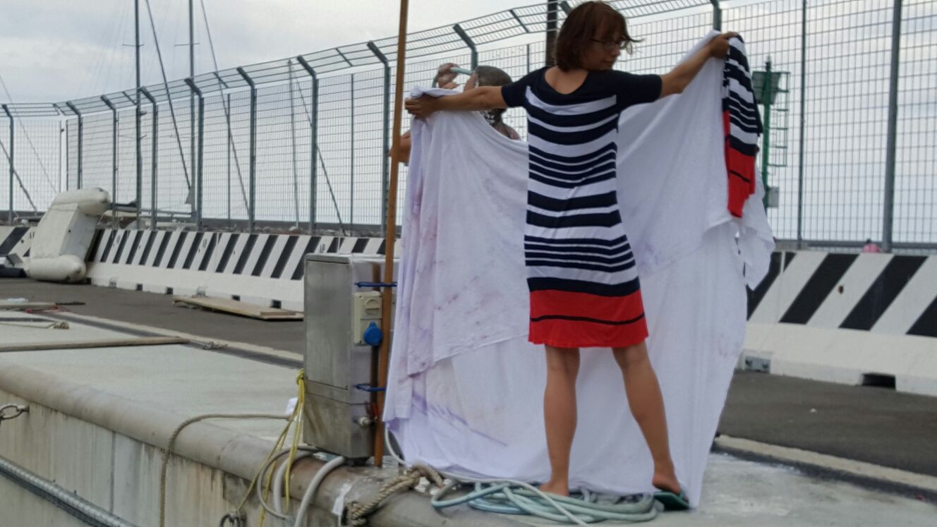 Einige Crew-Mitglieder haben selbst Segelscheine. Sicher legen wir schließlich an und genießen das Anker-Bier bzw. einen anderen Drink. Schweitzer haben die Yacht neben uns. Die charmanten Gentlemen gestatten uns, ihr WLAN zu nutzen. Wir checken unsere Mails und sonstiges. Mangels Sanitäranlagen duschen Uli und ich unter dem Schlauch mit Frischwasser, der uns an der Mole zur Verfügung steht. Splitterfasernackt, hinter einem Bett-Tuch. Die Schweizer sehen diskret weg.