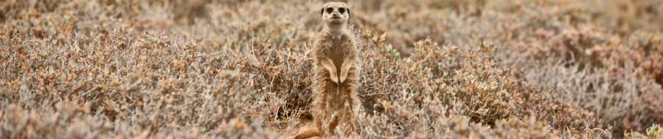 Mucksmäuschenstill sitzen wir auf den mitgebrachten Campingstühlen. Es ist kurz nach Sonnenaufgang und noch ziemlich kalt. Doch das macht den Erdmännchen normalerweise nichts aus, denn ganze Familien kommen aus der Kühle ihrer Sandbauten, um sich in den ersten Sonnenstrahlen den Bauch zu wärmen. Oh nein. Wir haben Pech. Es fängt an zu regnen.