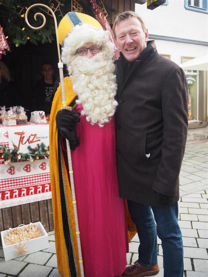 Bürgermeister Peter Juks mit Sebastian Metzger als Nikolaus.