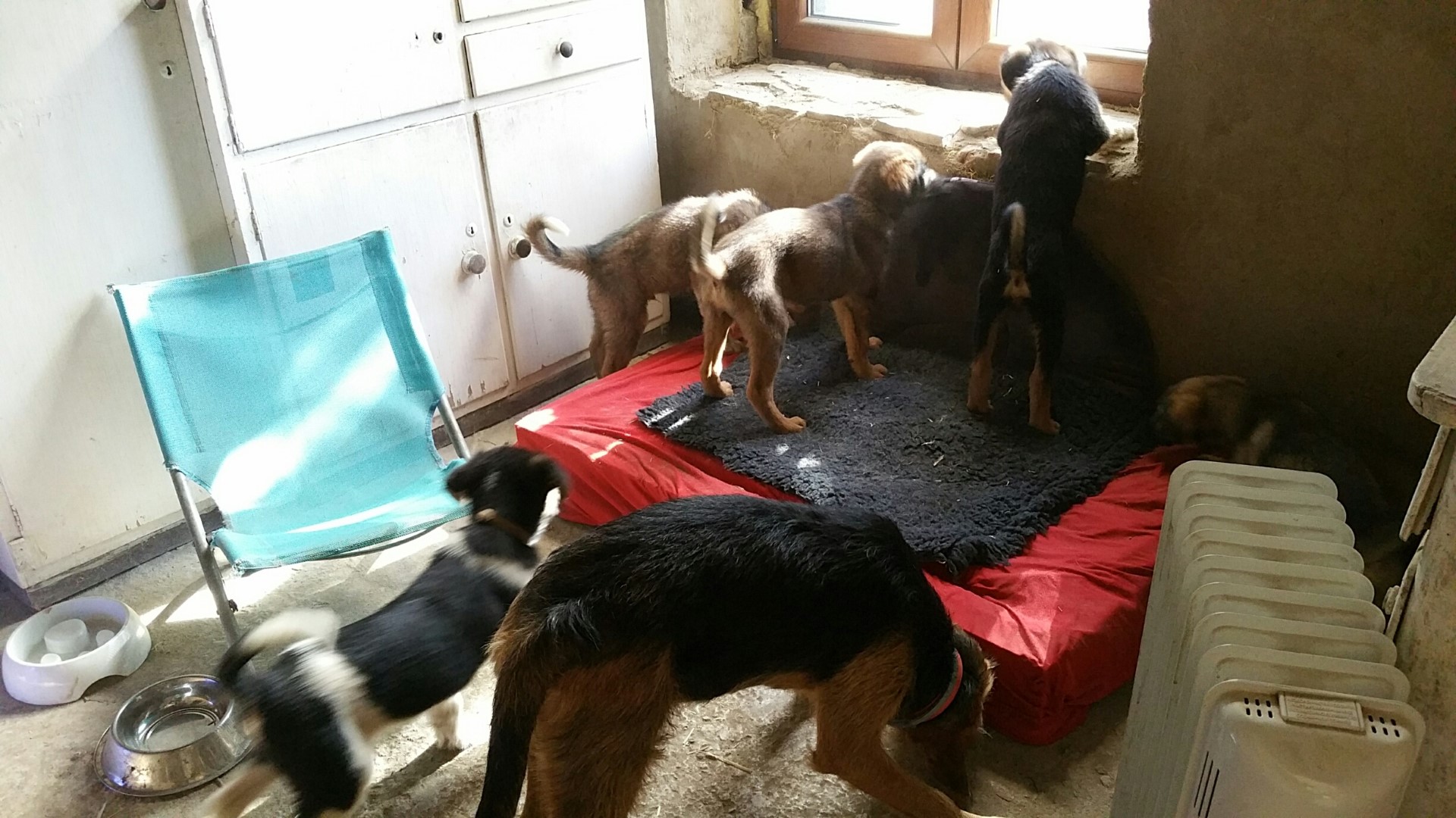 Die Welpen freuen sich auf die leckeren Sachen.