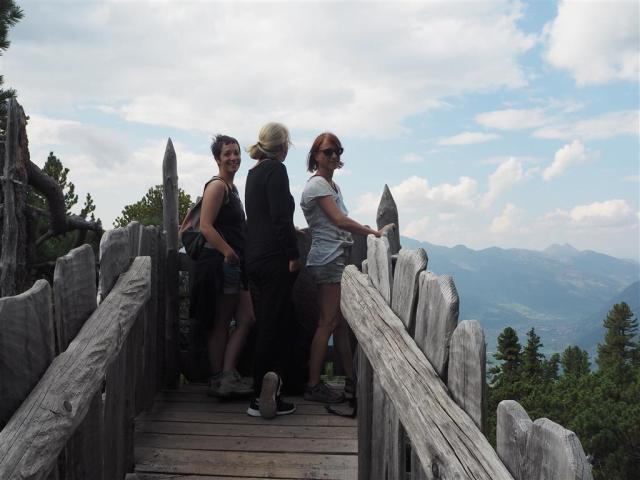 Mädelswochenende in Bad Gastein. Der Berg ruft! Wir suchen uns den Zirbenweg auf dem Graukogel aus. Mit dem Sessellift geht es hinauf. Macht Spaß, auch weil wir ein perfektes Spätsommer-Wochenende erwischt haben und die Aussicht fantastisch ist. Unsere Füße baumeln fast schwerelos in der Luft. Unter uns das Stückchen Land, das im Winter wohl als Skiabfahrt herhalten muss. Und dann sind wir endlich oben auf rund 2000 Metern. Bisschen frisch wird es hier nur am Abend. Der Spätsommer-Nachmittag wärmt nicht nur uns sondern auch unsere Gemüter.