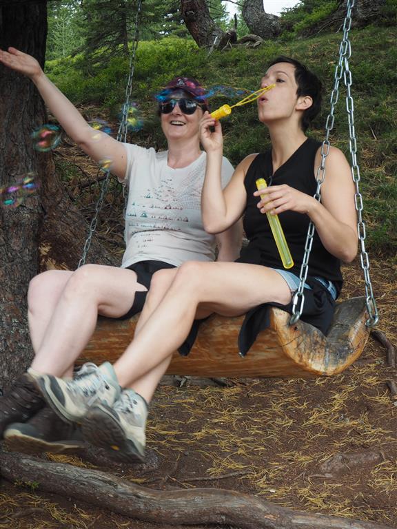 Wir genießen die Wanderung, die Ruhe und die speziellen Angebote. Wir schwingen auf der Zirbenschaukel und liegen im Zirbenbett. Das Faulsein haben wir uns verdient! Eine Runde auf dem Zirbenweg ist ein echtes Erlebnis! Probiert es selbst aus, falls Ihr mal in Bad Gastein seid!
