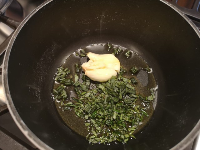Sgusciare i fagioli e mondare le altre verdure. Mettere tutto a bollire in circa 3 litri di acqua (Foto 1). Lasciare bollire a fuoco medio basso per circa 45 minuti finché tutte le verdure saranno ben cotte (Foto 2). Con una schiumarola mettere da parte circa la metà dei fagioli lessati (Foto 3). Frullare il brodo con le verdure fino a renderlo una crema vellutata (Foto 4 e 5). A parte in un pentolino fare rosolare in due cucchiai di olio per alcuni minuti lo spicchio d’aglio, la salvia e rosmarino (Foto 6). Se piace si può arricchire il soffritto con una listarella di lardo. Togliere lo spicchio d’aglio ed unire l’olio aromatizzato alla crema (Foto 7). Aggiungere due cucchiai di prezzemolo fresco tritato (Foto 8). Regolare di sale e pepe. Aggiungere i fagioli interi che avevo messo da parte (Foto 9). Riportare a bollore la minestra di fagioli ed unire la pasta all’uovo, possono essere tagliatelle schiacciate in pezzetti oppure altra pasta a piacere (Foto 10). Servire con una spolverata di parmigiano reggiano ed un filo di olio a crudo (Foto 11).