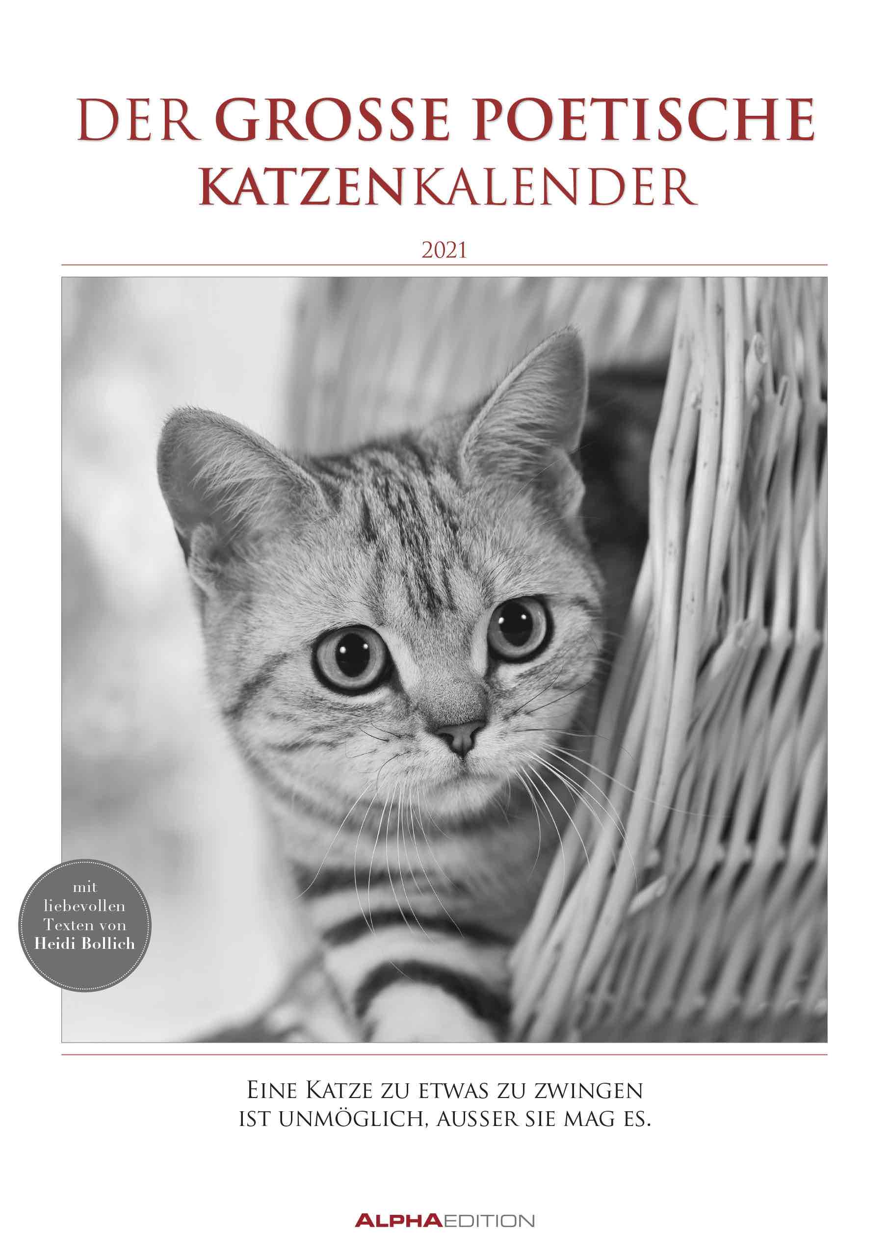 Der Große Poetische Katzen-Kalender 2021 von Alpha Edition, 29,7 x 42 cm, 11,95 Euro.