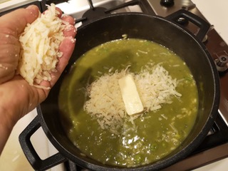 Spegnete il fuoco e mantecate il riso con l’altra metà del burro ed il parmigiano reggiano grattugiato. (Foto 12)