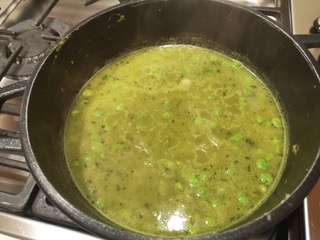 Sgranate i piselli tenendo da parte i baccelli. Lavate i baccelli sotto l’acqua corrente e metteteli a bollire nel brodo vegetale, coperti per 60 minuti a fuoco moderato. (Foto 1)