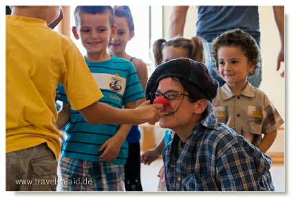 Clownauftritt im Kindergarten des Klosters.